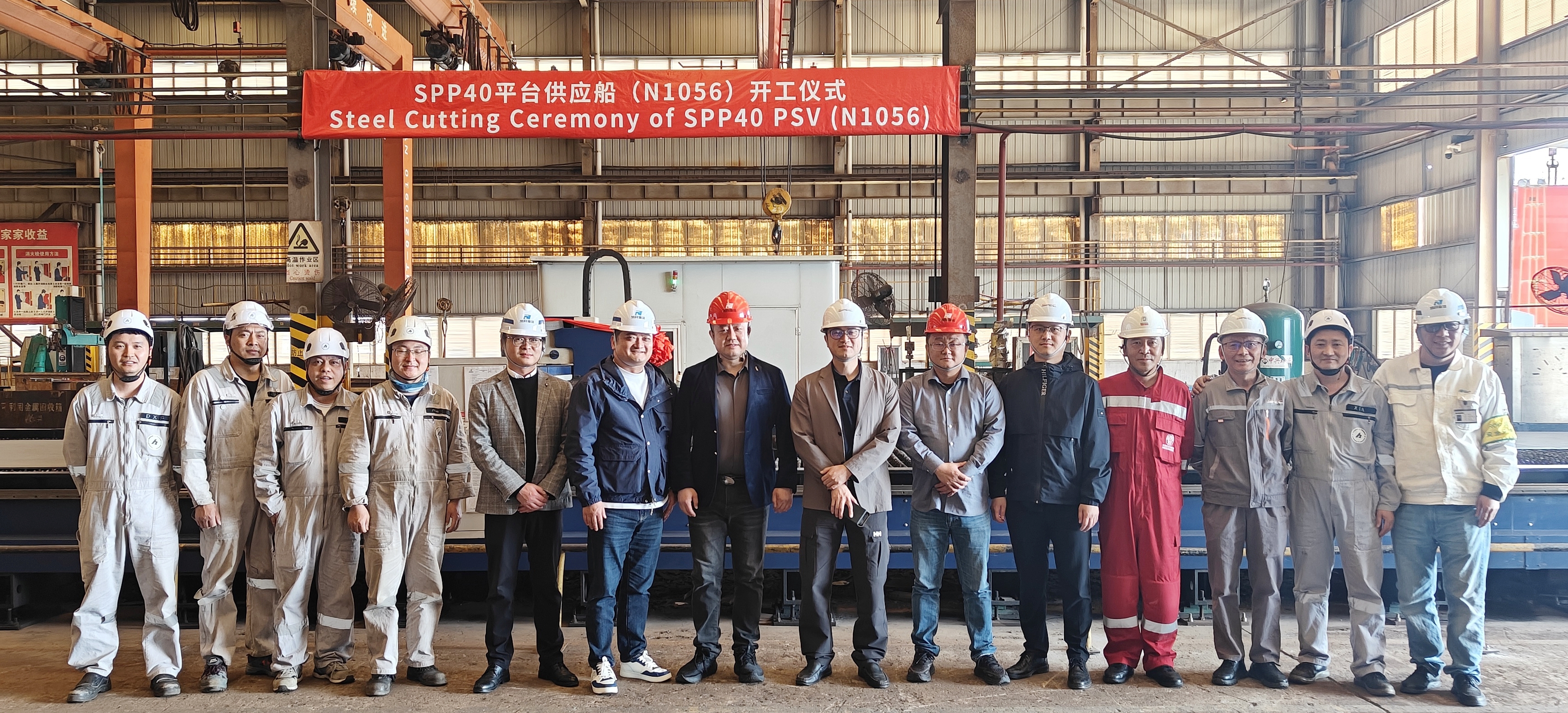 Recently, the SPP40 supply vessel N1056 undertaken by Rainbow Offshore successfully held a Steel-cutting ceremony in the workshop. Relevant leaders from the client, the company, and third-party institutions jointly witnessed this important moment. This marks another solid step forward for Rainbow Offshore in the field of high-end offshore engineering vessel manufacturing.The N1056 is the fourth vessel of the same type built by Rainbow Offshore, representing a further deepening of cooperation between both parties. Previously, Rainbow Offshore started the construction of two SPP40 vessels last year and achieved the milestone of simultaneous launch; in March this year, they strivingly started another one, and the vessels that have started are being built in a tense and orderly manner.The SPP40 supply vessel, as a new generation of environmentally friendly PSV (Platform Supply Vessel) that meets international market demands, has unique advantages in design and technical applications. It has an overall length of 81.75 meters, a beam of 17.4 meters, a depth of 7.8 meters, a maximum draft of 6.3 meters, a deadweight tonnage of 4,000 tons, and is equipped with a DP2 system and a replaceable containerized power battery system.From the first vessel that started steel-cutting last year to the fourth one that has smoothly begun construction, it fully demonstrates the customer's high recognition of Rainbow Offshore's construction capabilities and perfect fulfillment of contracts. As various projects progress simultaneously, Rainbow Offshore will continue to tackle difficulties, strive for excellence, adhere to the development philosophy of "pursuing customer satisfaction and exceeding customer expectations," ensure project quality, safety, and progress, and contribute its own strength to promoting the sustainable and healthy development of the marine engineering equipment industry.